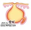 모낭이 파열되어 고름이 생기며 오랫동안 고름을 빼지 않으면 그 주변의 피부가 괴사되어 보인다.