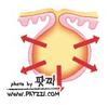 대응책_일단 고름을 오랫동안 빼지 않으면 피부 조직을 파괴해 영구성 흉터가 남게 된다. 집에서 짤 때는 고름이 충분히 ‘익을 만큼 익었을’ 때 따뜻한 스팀 타월을 올려 모공을 열고 각질을 부풀린 후 알코올에 소독한 여드름 짜는 기구를 사용한다. 맑은 피까지 잘 닦아낸 후 흉터를 방지하는 제품을 발라 관리한다.